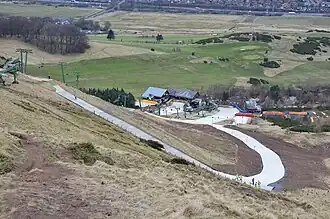 - π Midlothian Snowsports Centre, Hillend, Biggar Road EH10 7DU (Lothian Bus 4 or 15), β +44 131 445-4433. M-F 9AM-9PM, Sa Su 9AM-7PM. This has a main slope of 400 m, a loop alongside, 3 nursery slopes, a chairlift and 2 tows. Equipment hire is available or bring your own. Wear long trousers, long sleeves and gloves as the dendrex matting will skin you when you fall. Some disruption as a restaurant and other facilities are being built, and limited parking.