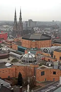 Eindhoven City Centre, with the Light Tower and Witte Dame on the right, the Blob on the left and the Admirant tower in the back.