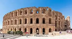 Having fallen into some state of disrepair, its blocks being used for building the surrounding town and also contributing to the Great Mosque in Kairouan, the amphitheatre was declared a World Heritage site in 1979. In 1999, it was used for filming some of the scenes from the Oscar-winning film Gladiator.