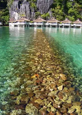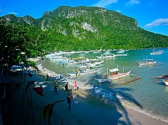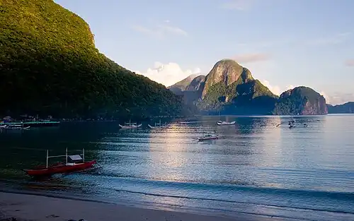 El Nido is a coastal town in Palawan. El Nido comprises 45 islands and islets; limestone cliffs are also found here, which form a Karst backdrop similar to those found in Ha Long Bay, Krabi and Guilin. It is a popular destination for locals during the long holidays of the Holy Week, but has been relatively unknown to foreign tourists. El Nido is more than just a stereotypical tropical paradise. Beaches, clear waters, jungle, steep limestone cliffs and stunning inlets make for one of the world's most beautiful seascapes.