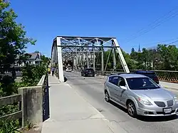 - Fergus — the next town if you follow the Grand River for about 5 km (3.1 mi), with a heritage downtown.