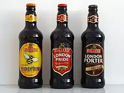 "Real ale pubs" — At a pub which especially caters to lovers of real ale, or at a beer festival, there will be more local brands (and "guests" from some distance away) and a wider range of bitters, and even a good choice of other types. Expect to see summer ales, winter ales, exotic beers (containing ingredients such as heather, honey or ginger), light milds, dark milds, lagers, stouts and, increasingly, porters (like a stronger dark mild, or a lighter, sweeter stout). These will be served from a long row of handpumps or (even more traditionally) straight from barrels sitting on the bar or (especially at beer festivals) in racks. There will also be a wide range of "bottle-conditioned" beers ("real ale in a bottle") usually either versions of English bitters, often called "pale ales", or very strong beers from France or Belgium. There will also be several ciders and perries.