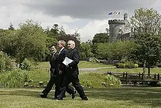 - Splurge at 🌍 Dromoland Castle Hotel, Dromoland, Newmarket-on-Fergus V95 ATD3 (10 km south of Ennis), ☏ +353 61 368 144. Baronial-style "castle" built in 1835 and now run as a very plush resort hotel, excellent reviews for comfort and service. Pricey? - you should see the bar bill for those guarding the VIPs who've stayed here. B&B double €1000.