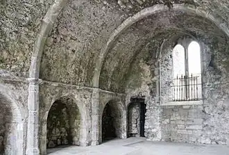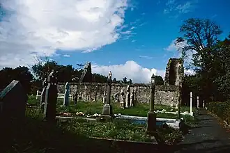 - St Finghin's Church is a ruin 100 m west of Quin Abbey, linked by a footbridge over the little River Rine. It was built around 1280 along with the castle and wrecked in the same assault.