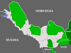 - 🌍 Karesuvanto (Sami: Gárasavvon, Swedish: Karesuando) – A twin village laying both in Finland and Sweden. The main border crossing between Sweden and Finland in Enontekiö.