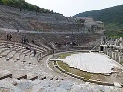 - 🌍 Great Theatre (Tiyatro). A grand 24,000-seater set into the hillside, built from 200 BC and extended in the 1st and 2nd centuries AD, but never roofed. It has been used for major rock concerts but is now too frail for anything that rocks harder than a chamber quartet - see below for the acoustics. St Paul came here intending to preach against the pagan cult of Diana, but he saw the size of the hepped-up crowd chanting her name, and legged it.