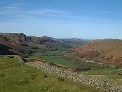 It can be found when travelling by car from Holmrook on the western coast of Cumbria or more popularly by train from Ravenglass. The Ravenglass and Eskdale Railway, better known as the La'al Ratty, winds its way from Ravenglass on the coast through the valley of Eskdale past