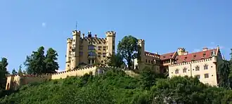 The castle is extremely popular. Admission is only via guided tour (about 25 minutes), and it's highly advisable to buy tickets online at least a month in advance. If you cannot score tickets online, you can try your luck for same-day tickets at Ticket-Center Hohenschwangau, Alpseestraße 12; tickets typically sell out before noon, and even if you get one, you may need to wait for many hours until your allocated time. Allow time to walk up to the castle (30 min uphill) or take the shuttle bus (€3/3.50 one-way/return). Make sure to sit behind the driver while bussing to the castles. Taking photographs is prohibited inside the castle. To get the picture postcard view of the castle, continue another 15 minutes uphill to Marienbrücke, which is also the drop-off point for the shuttle buses. It's one of four castles making up the world heritage site of Ludwig II's late 19th century castles.