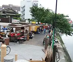 - 🌍 Nakasu. This area is next to Tenjin and is Fukuoka's red-light district, with over 3500 restaurants, as well as ramen stalls (yatai), shopping, pubs, hostess bars, rooftop beer gardens in summer, one surviving movie theater, and sex trade. The neon lights on the Naka River are famous with over 60,000 visitors a day, and it has the busiest street in Kyushu.