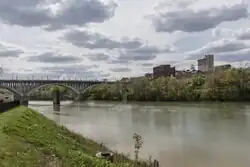 Fairmont, nicknamed the "Friendly City", is a city of 18,313 people (as of 2020) in West Virginia, and the county seat of Marion County (pop. 56,000). It was established in 1820 as Middletown, and changed in 1843 to Fairmont, short for "Fair Mountain". The city is located on the Monongahela River at it's origin at the confluence of the Tygart Valley River flowing northwest from Grafton, and the West Fork River flowing north from Clarksburg. Fairmont claims to be the origin of the Pepperoni Roll, West Virginia's official state food. Mary Lou Retton — a gold-medalist gymnast in the 1984 Olympics, who was highly popular around the country and particularly in West Virginia — came from Fairmont.