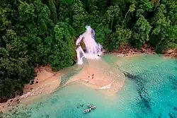 - 🌍 Kitikiti Waterfall (Air Terjun Kitikiti), Malakuli, Karas. A waterfall by the sea.