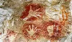 In the Kokas district, Tapurarang, which is a wealth of prehistoric heritage, can be found in several places, including Andamata, Fior, Forir, Darembang, and Goras sub-districts. In this place found various red handprints painted on the stone walls of cliffs and caves located on the seafront. One of them is: