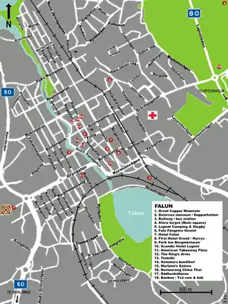 - 🌍 Falun Tourist Centre, Trotzgatan 10–12, ☏ +46 480-41 77 00, falun@visitsodradalarna.se. M–F 10:00–17:00. Sa 10:00–13.00.