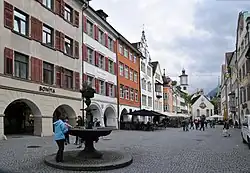 - 🌍 Katzenturm (Cats' Tower), Hirschgraben (Opposite tourist office). This defensive tower, built in 1507, was once part of the town's fortifications. It is believed to be named after the canons (Katzen) which were kept in the tower, as the targeting devices were shaped like lions' heads. In the early 17th century the building was converted into a bell tower; the current bell was poured in the 19th century and is the largest bell in Vorarlberg. The bell is rung on major holidays and on Fridays at 15:00 (Todesstunde Christi: believed to be the hour of Christ's death).