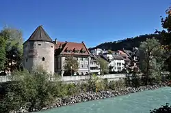- 🌍 Wasserturm (Water Tower), Montfortgasse 17. This tower was built in 1482, and once had an entrance to the Ill River. This tower now also serves as a meeting place for a local club.