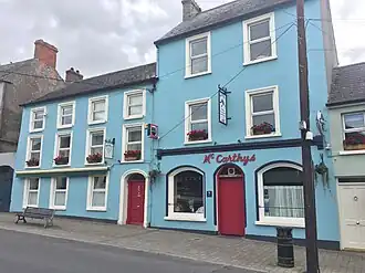 - McCarthy's Pub, Restaurant and Undertaker (not necessarily in that order), 17 Main St, Fethard E91 HP86, ☏ +353 52 613 1149. Th-Sa 4:30PM-midnight, Su 12:30-11PM. This legendary all-purpose institution was founded in the 1850s. It's handy for wakes but you don't have to be deceased to enjoy eating and drinking here. But they've focused a bit and no longer operate as a hotel, draper, grocer, spirit merchant, glass & porcelain shop and hackney horse hire. Pubs-cum-undertakers became common in Ireland at the Famine, when the law required bodies to be brought to the nearest pub until an inquest could be held: the pub had cold storage, and premises for a wake. That law was only repealed in 1962, and acting as a mortician was also a fast-track to gaining a publican's licence. The combination declined as separate funeral directors developed. It's reckoned some 80 pubs across Ireland still act as undertakers, but none are as cheek-by-jowl as McCarthy's.