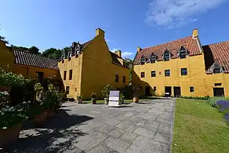 "It taks a lang spoun tae sup wi a Fifer" so the saying goes, to illustrate the independent and guarded nature of folk of Fife. Fife is a peninsula between the Forth and Tay estuaries, so it was detached from early transport routes and in Pictish times may have been a semi-independent kingdom. It became more important from the 11th century when the main royal residence moved from Scone near Perth to Dunfermline, and St Andrews grew as a pilgrimage centre then university town. Fife produced grain and was industrial from an early stage through salt-panning, quarrying and coal: the same coalfield that outcrops near Edinburgh stretches under the sea to outcrop in Fife. A string of little harbours along the Forth exported these goods, and when the ships returned unladen from the Low Countries they used roof tiles for ballast. These were re-used for local building so Fife acquired its townscape of red-pantiled villages, crow-stepped in Dutch style. Its barons were wealthy and powerful and the county was informally referred to as the "Kingdom of Fife".