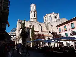 - 🌍 Plaça de les Patates (The intersection of Carrer Tints, Carrer de la Muralla, and Carrer de les Bruixes). This historic square was named 'square of the potatoes' as it used to be where the Farmer's market for vegetables was held up until the 1950s. These days, this is a quiet square flanked by large shade trees and the façades of 17th-century buildings. While tranquil during the day, it is rather lively at nights, especially during the summer due to the two bar/cafés that have opened on the square. While the main local "scene" is still up on Plaça del Sol due to the row of bars and parking lot up there, many come to this square as it is a more pleasant atmosphere in the pedestrian zone where one can meet with friends and sit outside for a drink during the hot summer months.