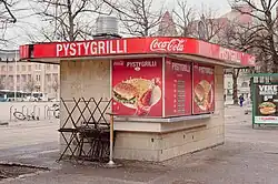 Cheaper options are largely limited to generic fast food (pizza, hamburgers, kebabs and such) in the €7–12 range. For eating on the move, look for grill kiosks (grilli), which serve sausages, hamburgers and other portable if not terribly health-conscious fare late into the night at reasonable prices, with local atmosphere as a bonus. In addition to the usual hamburgers and hot dogs, look for meat pies (lihapiirakka/köttpirog), akin to a giant savoury doughnut stuffed with minced meat and your choice of sausage, fried eggs and condiments. A local favourite is makkaraperunat: a mix of sausage and potato pieces, eaten with a disposable fork. Hesburger is the local fast-food equivalent of McDonald's, with a similar menu. Also most international fast food chains are present. The grills and hamburger chains may offer "Finnish" interpretations of some dishes, such as reindeer burgers in Lapland, or substituting sandwich buns with a sour-rye bun on request. Also pizzas are sometimes offered with similar twists.
