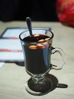 During the winter, do not miss glögi (Swedish: glögg), a type of spiced mulled wine most often served with almonds and raisins. Although it was originally made of old wine the bottled stuff in grocery stores is usually alcohol free and Finns will very often mix in some wine or spirits. In restaurants, glögi is served either alcohol-free, or with 4 cl vodka added. At Christmas time, glögi is to Finns what eggnog is to Americans: fresh, hot glögi can, for example, be found at the Christmas markets and somewhat every bar and restaurant during the season.