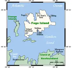 Fogo Island and the Change Islands lie off the northeast coast of the island of Newfoundland in Atlantic Canada.