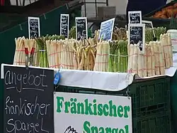 Asparagus is cultivated in all Franconian districts, with a focus on Lower and Middle Franconia. Asparagus is often eaten with fried sausages and potatoes, but you will also find other varieties on the menus. In 2013, the European Commission included Franconian asparagus in the EU quality register of products with a protected geographical indication (PGI).
