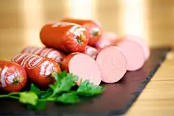 The Hof Bratwurst is made from lean pork and some beef. It is cut very finely with the addition of ice cubes, and then about 50 grams of sausage meat is filled into a pork gut with a diameter of 18-22 mm. It is usually sold and eaten in pairs.