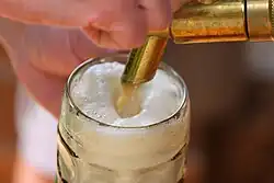 The expression ungespundetes Bier, (unspun beer) comes from the so-called Spundloch, (bunghole) at the beer barrel. In wooden barrels, this hole on the top serves to equalize the pressure during fermentation, where carbonic acid and thus excess pressure is created. The unspun beer, which is mainly used in Franconia, ferments without closing this hole and thus has a lower carbonic acid content than other beers.