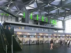 You will most likely arrive in Freiburg by traveling via Frankfurt Airport (FRA IATA) or Zurich Airport (ZRH IATA), both about a 2-hour train ride away from the city. Frankfurt Airport has frequent direct rail connections to Freiburg almost every hour from the Fernbahnhof. Follow the signs once you arrive and buy your ticket at the Deutsche Bahn Reisezentrum (DB Travel Center). Most trains travel directly through Freiburg, although a few require a train change. Booking ahead online can shave the train ticket from Frankfurt Airport considerably, although it requires use of the selected train. If your plane is late, you will have to buy a new ticket. A standard ticket from the DB office at the Fernbahnhof to Freiburg is €62. Most airlines serving Frankfurt will also offer rail&fly which gives you a highly flexible train ticket at rates usually not much higher than the cheapest discount tickets, but the airlines set the prices, so you might pay more or even get it for free.