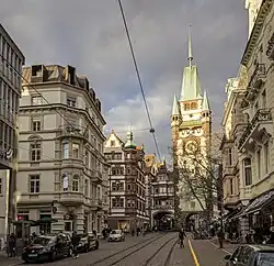 The 🌍 Freiburg Hauptbahnhof (QFB IATA) is close to the inner city. Frequent connections run to the north towards Frankfurt and south to Basel, with fast ICE trains leaving in each direction each hour. Again, planning ahead can get cheap fares of €29 each way. From the Hauptbahnhof, you have direct access to the Tram (Straßenbahn) which runs directly overhead the main station and offers an easy route into the city. The Hauptbahnhof is also within easy walking distance of the inner city and several good hotels. Main direct destinations include: