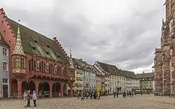 - 🌍 Historical Merchants' Hall (Historisches Kaufhaus). Located on the square surrounding the Muenster.