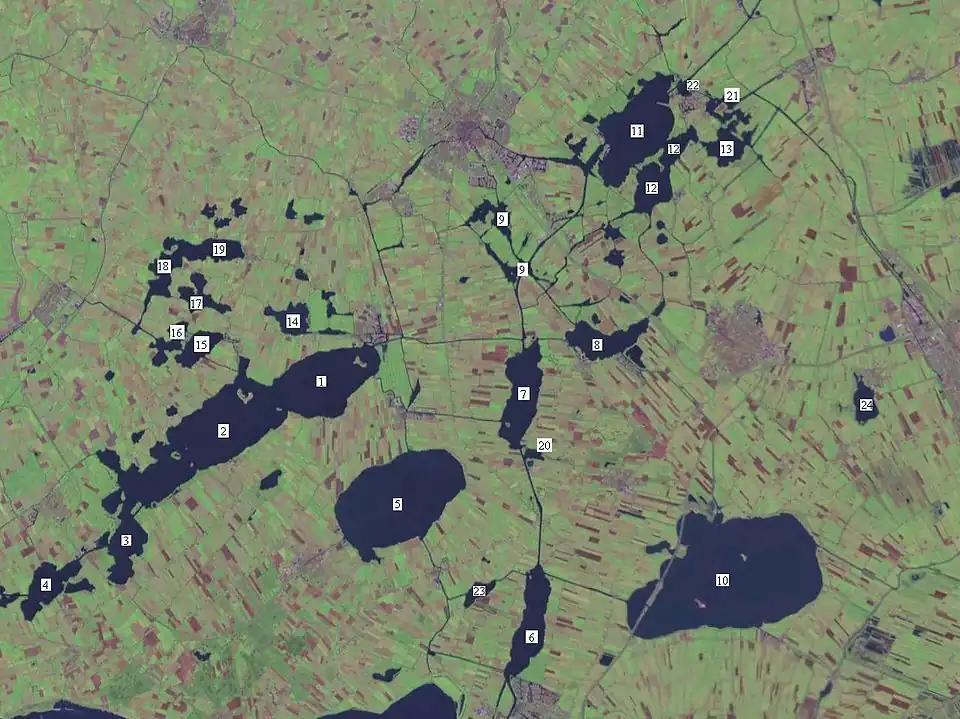 There are many large and small lakes in the Friese Meren area, plus a number of them that are not directly in this South-Western part of Friesland, but are still commonly included when referring to the Frisian Lakes. Below is a list of the most prominent ones for sailing and other water activities. Note that the Frisian names, here indicated in italic, are the official ones. Although information in Dutch is common, you are likely to encounter the local language names here and there on maps and signs. The largest and most popular ones are indicated in bold.