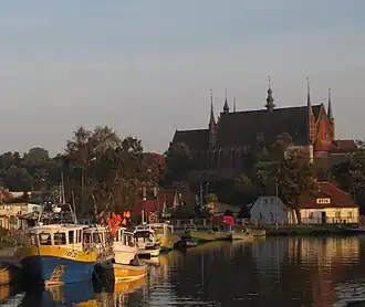 Frombork is a small fishing village in Warmia-Masuria in Poland. It was part of Prussia, and later Germany, and was known by its German name Frauenburg from the Middle Ages until 1945.