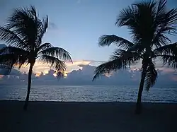 May to September is the summer wet season. During the summer, it is warm and humid, with the prevailing wind bringing tropical breezes blowing up from the Caribbean, Gulf of Mexico and equatorial Atlantic. It is often clear and sunny in the mornings but as the land heats up the air rises and the sea breeze kicks in. This brings in more damp moist air from the sea and so by noon it often starts to cloud over, and then there are commonly short showers in the afternoon, which helps to cool the air off for a cooler and generally dryer evening. The Atlantic hurricane season largely occurs from late July through early November, with peak activity generally occurring from mid-August through early October.