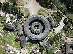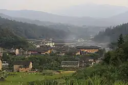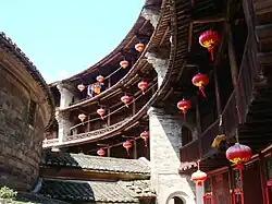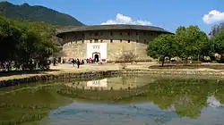 The Fujian tulou (Chinese: 福建土楼 Fújiàn tǔlóu; literally: "Fujian earthen buildings"), also known as Hakka tulou, Hakka earth houses or roundhouses, are rural dwellings unique to the Hakka people in the mountainous areas in southeastern China. There are also toulou in Guangdong and Guangxi, but the