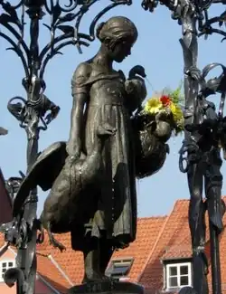 - 🌍 Gänseliesel (goose girl). Marktplatz. This fountain outside the Altes Rathaus is Göttingen's most famous figure. She is known as the "most kissed girl in the world" since every local student who receives a Ph.D. gives her a kiss (after being dressed up with a silly graduation hat and wheeled to the statue in a handcart).