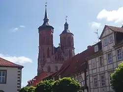 - 🌍 Marienkirche (St. Mary's Church). Neustadt and Groner-Tor-Straße. The church bell tower used to be the gate into the neighboring city Neustadt (new city), which Göttingen bought in 1319. St. Mary's is probably older than that; it used to be the church of the Teutonic Knights. The altar triptych was carved by Bertold Kastrop in 1524.