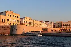 Gallipoli (Salentino: CaαΈαΈΓ¬puli) is a town of 20,600 inhabitants in the Apulia region of Italy, on the west coast of Salento Peninsula, facing the Ionian Sea. Gallipoli has become one of the main Italian tourist destinations for summer holidays, because of its beach resorts, enchanting historic center and vibrant nightlife.