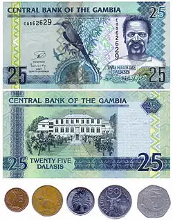 The Gambia uses the dalasi as its currency, denoted by the symbol "D" (ISO currency code: GMD). The dalasi is divided into 100 bututs. Banknotes come in denominations of 5, 10, 20, 25, 50, 100 and 200 dalasis and you may find D0.25, D0.50 and D1 coins in circulation.