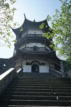 Gaoyou has two ancient pagodas, the Jingtu and Zhenguosi Pagodas. The 30-meter high Jingtu Pagoda, in central Gaoyou, was constructed in AD 1612 during the Ming Dynasty, and has gone through an extensive renovation. The 25 meter Zhenguosi Pagoda is located on a small island on the western side of the Grand Canal. Although the more than 1,100-year-old Pagoda is in poor repair, the adjoining Buddhist temple has undergone an extensive renovation, and a new bridge now allows access to the island.