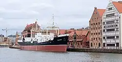 - 🌍 Motława River bank, Długie Pobrzeże. Impressive houses stand along the river bank. They can be nicely observed from the other bank of Motława.