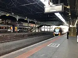 Geelong is easily reached by train, with V/Line operating a near-suburban level of service between Melbourne and the city on the Geelong Line. The city has seven stations: from north to south, they are Corio, North Shore, North Geelong, Geelong, South Geelong, Marshall and Waurn Ponds. All trains stop at the grand Geelong Station, a five-minute walk from the city centre. Trains on the long-distance Warrnambool Line also stop at Geelong and provide a connection to inland towns including Colac, Camperdown and the western city of Warrnambool.