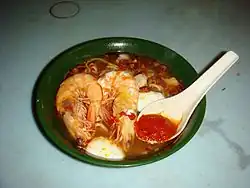 There are a few twists to the Penang way of celebrating Chinese New Year, particularly the food, which bears little resemblance to the steamy hotpots of frigid northern China. The top dish is bak kwa (肉干), sweet barbecued pork, followed closely by yu sheng (魚生), a salad of shredded vegetables and raw fish enthusiastically tossed into the air by all present. Favourite desserts are crumbly sweet pineapple tarts and gooey steamed nian gao (年糕) cakes. Ang pows (红包) are still handed out generously, albeit customarily only by married couples. |