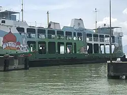 From Butterworth, the easiest way to reach the heart of George Town is by Rapid Ferry, the oldest ferry service in Malaysia. See the get in section of the Butterworth page for information on how to arrive by train. Only a short walk from the Butterworth train station is the Sultan Abdul Halim Ferry Terminal (also known as the Butterworth Ferry Terminal), with the cross-strait ferries departing every 10-20 minutes between 5:20AM– and 12:40AM daily. The fare to George Town costs RM1.20 for adults or RM0.60 for children. If you are returning to Butterworth the journey is free. Ferries arrive at 🌍 Raja Tun Uda Ferry Terminal at Weld Quay within the city centre's UNESCO World Heritage Site. Virtually all Rapid Penang buses within George Town arrive and depart from Weld Quay, with a brief stopover at KOMTAR. The car ferry service has been discontinued, and all cars are now required to use one of the two bridges; the ferry service now only carries passengers, bicycles and motorcycles.