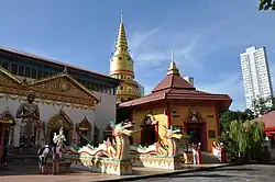 As George Town is home to thousands of expatriates of various nationalities, other cultural celebrations include Songkran, Bon Odori, St. Patrick's Festival and Oktoberfest. Songkran is celebrated by ethnic Thais and other Penangites regardless of ethnicity at Pulau Tikus, where two Buddhist temples - Wat Chaiyamangkalaram and the Dhammikarama Burmese Temple - are located. Bon Odori is typically held at the Esplanade and features Japanese cultural performances. St. Patrick's Festival is organised by the Penang Irish Association and held annually at Straits Quay, while the Malaysian-German Association holds the yearly Oktoberfest celebrations.