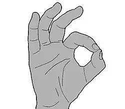 - A-ok or Okay — made by connecting the thumb and forefinger in a circle and holding the other fingers straight or relaxed in the air, may signal the word "okay". While the gesture is positive in some countries, in certain parts of central and southern Europe (although not in Spain or Portugal), Turkey, Latin America and the Arab world, the gesture is considered offensive and disgusting. One American political legend states that the then-Vice President Richard Nixon greeted a crowd of Brazilian well-wishers with this symbol when emerging from a plane for a visit of the country. In the U.S.A., this gesture was adopted by white supremacists in the 2010s and is now controversial.
