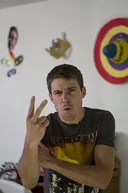- V sign — In large parts of the world, holding the forefinger and middle finger erect, either with the palm facing inward or outward, is a sign for peace or, in the Second World War, "V for victory". It is also a popular pose for photos, especially in East Asia. However, if you make this sign in Britain, Ireland, Australia or the Indian Subcontinent, be sure to have your palm facing outwards, as the reverse is a rude gesture equivalent to showing someone the middle finger.