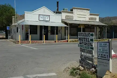 - Hackberry (Arizona), USA — An 1875 mining town west of Peach Springs; the silver mine closed in 1919 amid legal infighting between its owners. Route 66 came to town in 1926; Arizona 66 from Kingman to Seligman (82 miles) was bypassed by I-40 on a more direct 69-mile route in the 1970s. Hackberry was abandoned from 1978 to 1992, Valentine and Truxton also became highway ghost towns while Peach Springs was kept marginally alive by the Hualapai nation.