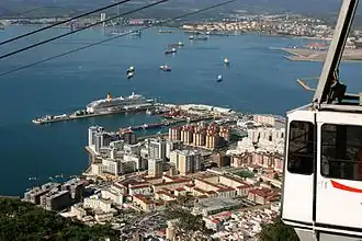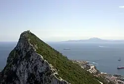 Gibraltar, colloquially known as The Rock or Gib, is an overseas territory of the United Kingdom at the entrance to the Mediterranean Sea. It is bordered by Spain to the north, while Morocco is a short distance across the strait to the south. Gibraltar has a population of 34,000 as of 2020.