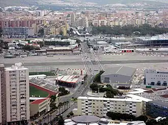 🌍 Gibraltar International Airport (GIB IATA or North Front Airport). Has daily scheduled flights to and from London Heathrow and London Gatwick. There are also flights from Bristol, Manchester and Casablanca (via Tangier).